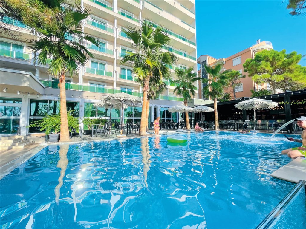 v letovisku Durrës - v časti Golem • priamo pri krásnej širokej 10 km dlhej pláži s jemným pieskom a pozvoľným vstupom do mora • pláž vhodná aj pre malé deti a neplavcov • ležadlá a slnečníky na pláži (zdarma) a štýlové ležadlá s baldachýnmi (za poplatok) • motorizované vodné športy a atrakcie na pláži (za poplatok) • 39 km od medzinárodného letiska v Tirane
