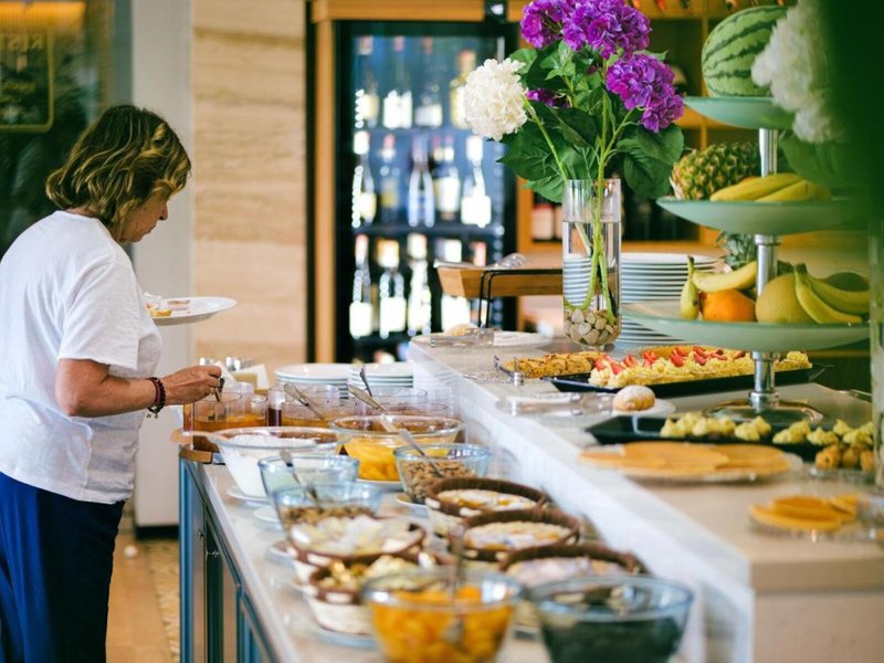 Jedlo a nápoje: Hostia si môžu vybrať z rôznych možností stravovania vrátane kaviarne a baru. Nefajčiarska reštaurácia s klimatizáciou a samostatnou fajčiarskou časťou ponúka rôzne možnosti stravovania. K dispozícii je polpenzia a plná penzia. Denne sa podávajú výživné raňajky. Na požiadanie sú k dispozícii vegetariánske, detské, bio a vegánske jedlá.