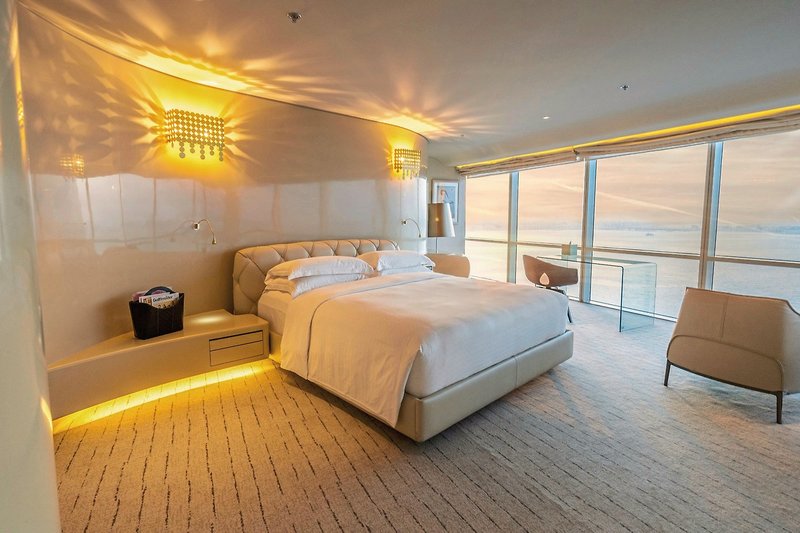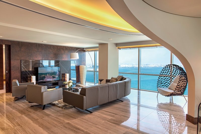 - 151-200 qm, Suite, Etage, oberste, Meerblick, separates Schlafzimmer, separater Wohnraum, Schreibtisch, Dusche oder Badewanne, Bademantel, Haartrockner, Klimaanlage, Mini-Kühlschrank, Safe, Bügelbrett, Bügeleisen, TV, WLAN, Kaffee/Tee, Balkon (möbliert), Whirlpool, Zutritt zur Club-Lounge, Softdrinks in der Club-Lounge, Kaffe, Tee und Snacks 15-22 Uhr