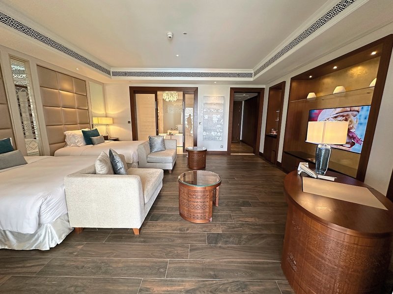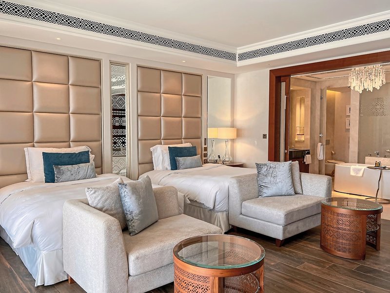 Wohnen mit Stil: Die luxuriösen Zimmer vereinen arabische und westliche Elemente – ansprechend und außergewöhnlich. Erleben Sie unvergleichliche Annehmlichkeiten in diesem Refugium der Entspannung und Erholung.