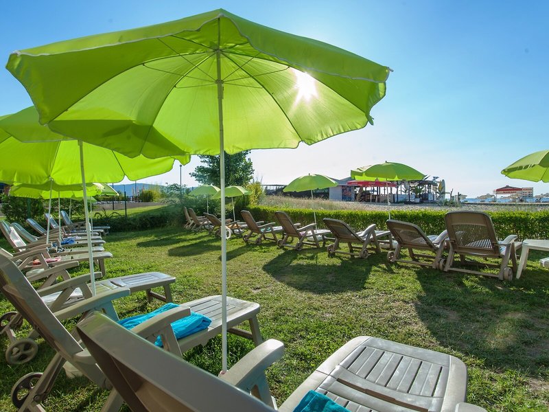 - Pláž: slnečníky na pláži, ležadlá na pláži