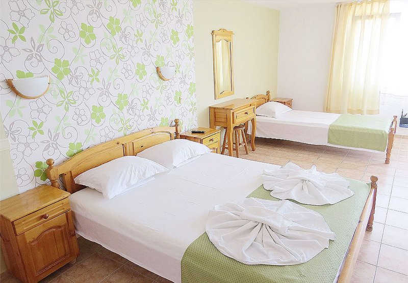 Doppelzimmer Superior: Die Doppelzimmer Superior (ca. 20m²) sind, bei sonst gleicher Ausstattung wie die Doppelzimmer, größer und mit einem zusätzlichem Einzelbett ausgestattet. Die Doppelzimmer Superior können zur Land- oder Strassenseite liegen (teilweise auch mit Meerblick).
