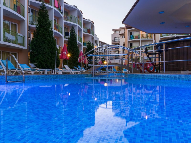 Poloha a okolie Hotel sa nachádza cca 300 m od piesočnatej pláže a cca 2 km od centra. Komplex sa nachádza v tesnej blízkosti pláže Cacao, ktorá je známa svojou rozľahlou piesočnatou plážou, romantickými reštauráciami a rušným nočným životom. Najbližšia verejná doprava je vzdialená asi 2 minúty, vďaka čomu je centrum a neďaleké letoviská ako Nessebar (asi 3 km) a St. Vlas ľahko dostupné. Nákupné možnosti sú vzdialené len 50 metrov a mnohé bary a nočné kluby sú vzdialené asi 100 metrov. Letisko Burgas je vzdialené približne 35 km.