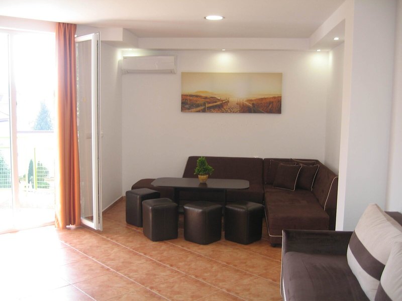 Lage & Umgebung Das Hotel liegt etwa 300 m vom Sandstrand und rund 2 km vom Zentrum entfernt. Der Komplex befindet sich ganz in der Nähe von Cacao Beach, berühmt für seinen weitläufigen Sandstrand, die romantischen Restaurants und das pulsierende Nachtleben. Die nächsten öffentlichen Verkehrsmittel sind nach ca. 2 min erreicht, so dass das Zentrum und nahe gelegene Resorts wie Nessebar (ca. 3 km) und St. Vlas einfach zu erreichen sind. Einkaufen kann man schon nach etwa 50 m, viele Bars und Nachtlokale öffnen in etwa 100 m Entfernung. Bis zum Flughafen Burgas sind es ca. 35 km.