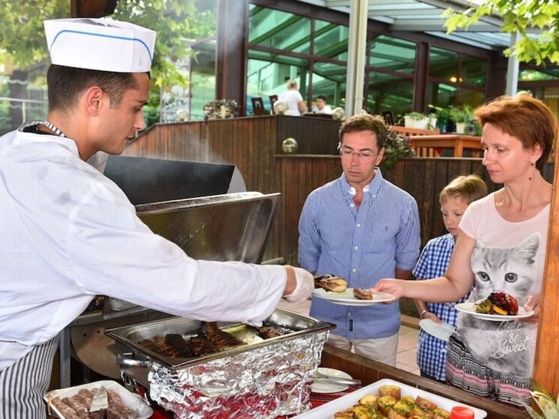 Jedlo a pitie: Môžete si vybrať z rôznych možností stravovania, ako je reštaurácia, kaviareň a bar. Raňajky, obed a pestrý večerný bufet sú chutné a rozmanité. Na požiadanie je možné pripraviť diétne jedlá a detské menu. Okrem toho sú k dispozícii špeciálne jedlá a občerstvenie. Špeciálnou atrakciou je show cooking. Podnik ponúka široký sortiment alkoholických a nealkoholických nápojov.