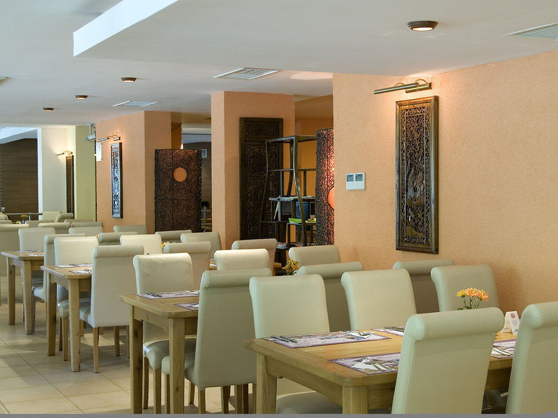 Essen & Trinken: Der gastronomische Bereich wartet mit einem Restaurant und einer Bar auf. Das Haus bietet als buchbare Verpflegungsleistungen Halbpension und Vollpension. Zum Frühstück bedienen sich die Gäste am reichhaltigen Buffet. Verschiedene Gerichte à la carte können zum Mittagessen und Abendessen gewählt werden.