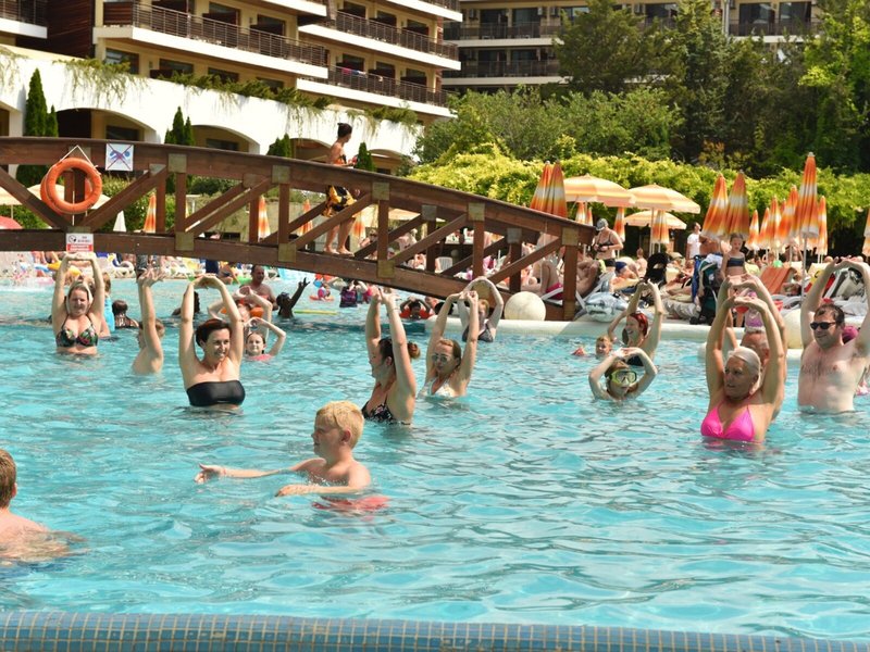 Šport & Fitness: Vonkajší bazénový komplex s detskou časťou je ideálny pre aktívny oddych a pravidelný aqua tréning. Osviežujúce nápoje v bare pri bazéne a príjemný relax vo vírivke (za poplatok) najlepšie naladí všetkých milovníkov vody. Na slnečnej terase sú k dispozícii pohodlné ležadlá a slnečníky poskytujúce tieň. Dom ponúka vonkajšie športové možnosti, ako je cyklistika/horská cyklistika, tenis, plážový volejbal, volejbal, basketbal, minigolf, lukostreľba a jazda na koni. Milovníci vodných športov si prídu na svoje aj pri vodnom lyžovaní, windsurfingu, vodnom skútri, motorovom člne, vodnom bicykli, banáne, šnorchlovaní, potápaní a aqua fitness. Hostia si môžu vybrať zo širokej škály indoorových športov, vrátane posilňovne, stolného tenisu, bedmintonu, biliardu, bowlingu, squashu a aerobiku. Hotel ponúka rôzne možnosti wellness, ako sú kúpele, sauna, parný kúpeľ, kozmetický salón a masáže. Mini klub, mini diskotéka, diskotéka a nočný klub zaisťujú najlepšiu zábavu vo voľnom čase.