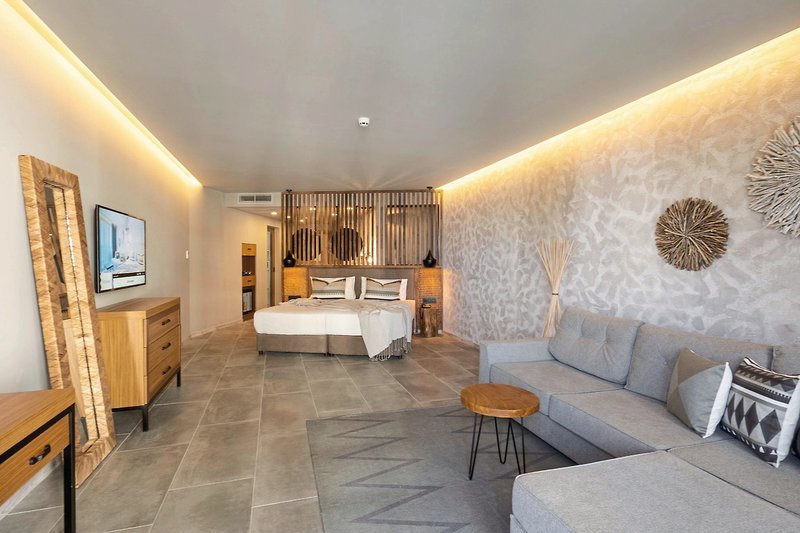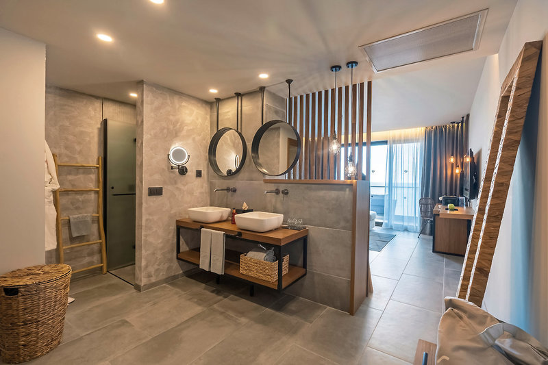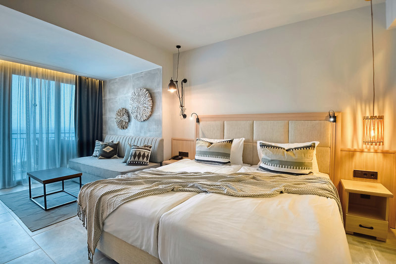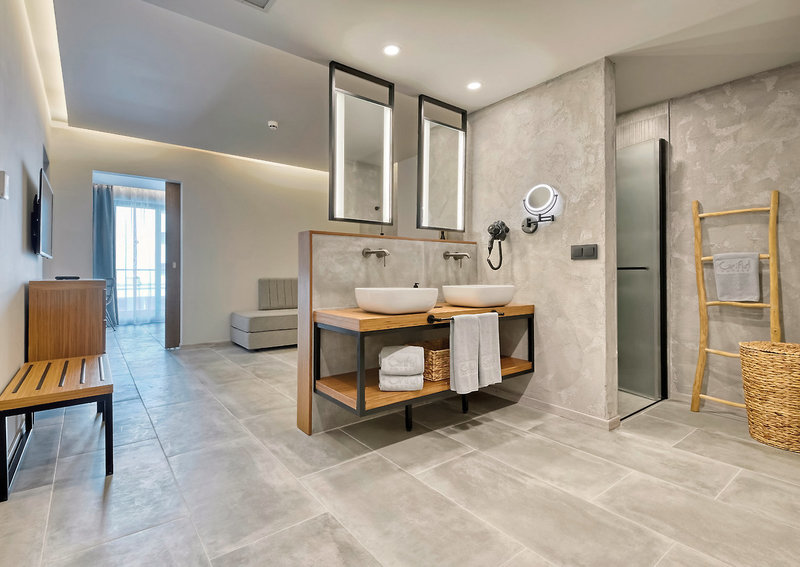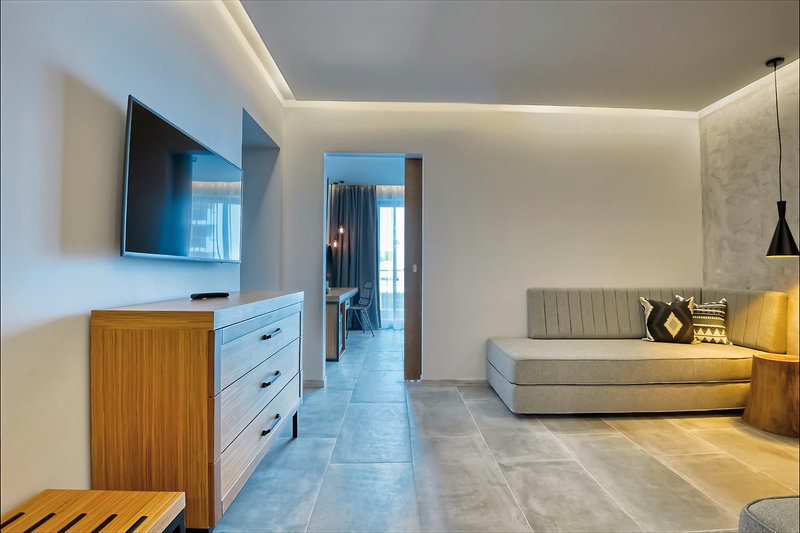 - 36-40 qm, Suite, für Erwachsene ab 16 Jahre, Privilege, Etage, oberen, Meerblick, Nichtraucher, optisch getrennter Wohn-/Schlafraum, Doppelbett, Sofabett, 1 Bad, Dusche, WC, Bademantel, Badeslipper, Haartrockner, Kosmetikspiegel, Klimaanlage, Korridor/Flur, Minibar, Auffüllung regelmäßig, Softdrinks, Kaffee/Tee, Bier, Wasser, Safe, Kapsel-Kaffeemaschine (Auffüllung täglich), 1 TV (Sat-TV, deutschsprachiges Programm, landestypisches Programm, Flachbildschirm), WLAN, Balkon (möbliert), Kopfkissen-Menü, separater Check-in & Check-out, early Check-in (nach Verfügbarkeit), late Check-out (nach Verfügbarkeit), hochwertige Badartikel, Panoramafenster, bodentiefe Fenster