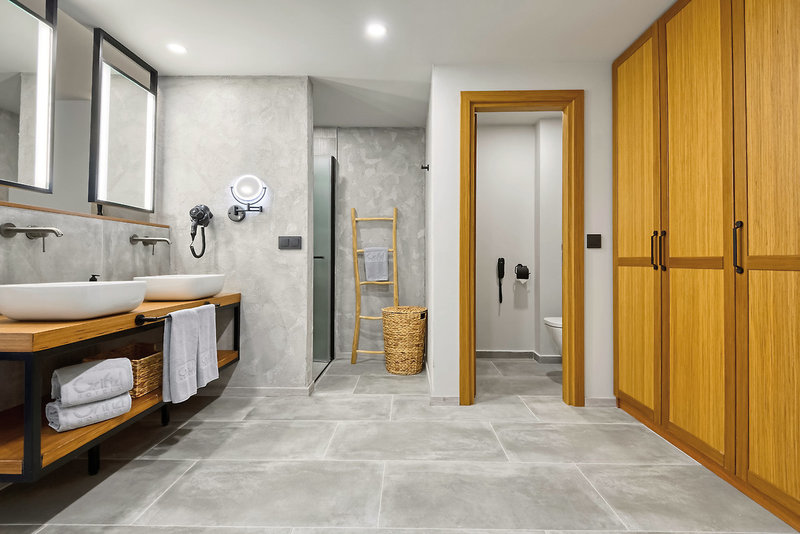 - 26-30 qm, Doppel, für Erwachsene ab 16 Jahre, Privilege, Etage, oberen, Meerblick (seitlich), Nichtraucher, 1 Bad, Dusche, WC, Bademantel, Badeslipper, Haartrockner, Kosmetikspiegel, Klimaanlage, Korridor/Flur, Minibar, Auffüllung regelmäßig, Softdrinks, Kaffee/Tee, Bier, Wasser, Safe, Kapsel-Kaffeemaschine (Auffüllung täglich), 1 TV (Sat-TV, deutschsprachiges Programm, landestypisches Programm, Flachbildschirm), WLAN, Balkon (möbliert), Kopfkissen-Menü, separater Check-in & Check-out, early Check-in (nach Verfügbarkeit), late Check-out (nach Verfügbarkeit), hochwertige Badartikel