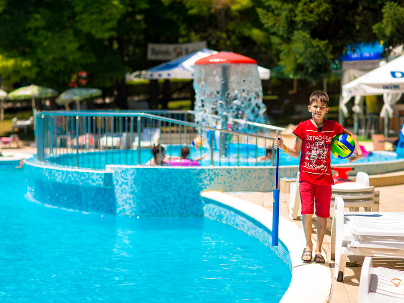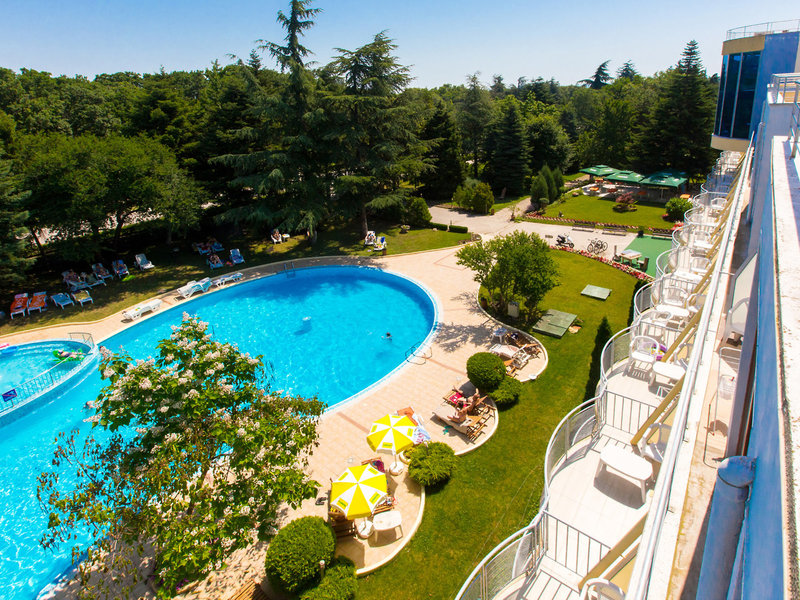 Lage & Umgebung Das Hotel liegt in einem natürlichen Park, ca. 500 m vom Strand entfernt. Zum Kloster “Hll. Konstantin und Helena” sind es etwa 400 m und zum Thermalbad 450 m. Die Einkaufspromenade befindet sich in 300 m Entfernung. Bis zum Flughafen Varna ca. 16 km. Transferzeit: Ca. 30 Minuten.