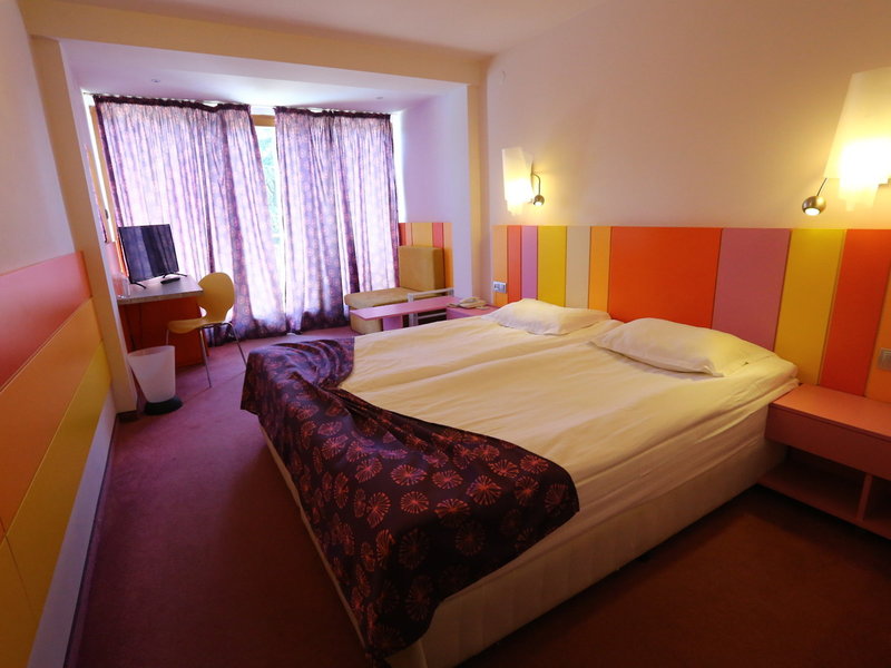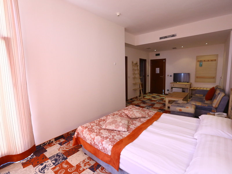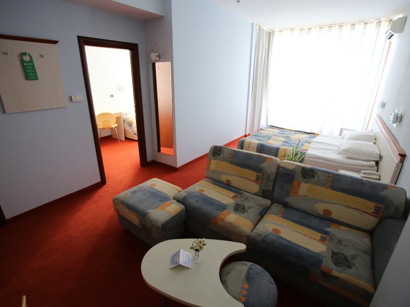 - Dvojlôžková izba Large (DZX2), trojlôžková izba, nefajčiarska izba, v hlavnej budove, výhľad na bazén, výhľad do parku, cca 27 - 30 m², posledná čiastočná rekonštrukcia 2016, kombinovaná obývacia izba/spálňa, detská postieľka, klimatizácia: centrálne ovládaná, podlaha: koberce, trezor: za poplatok, posedenie, minibar, telefón, internet: platba v hotovosti, TV, suchá vaňa, WC 7 EUR, platba v hotovosti, TV/WiFi za týždeň. er, balkón: s ležadlami , s posedením