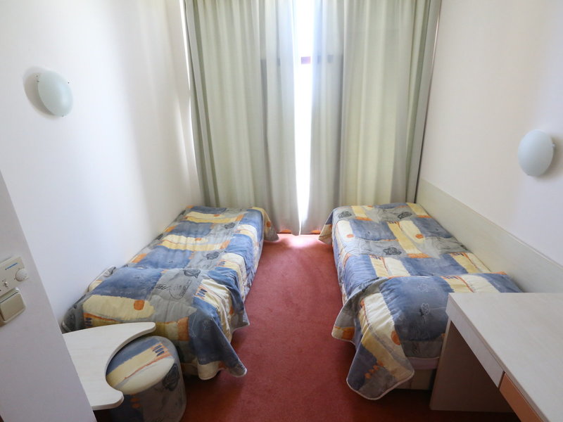 - Jednolôžková izba s manželskou posteľou a dieťaťom (DSX1), dvojlôžková izba, v hlavnej budove, strana do záhrady, výhľad na bazén, výhľad do parku, cca 21 - 23 m², posledná kompletná rekonštrukcia 2011, posledná čiastočná rekonštrukcia 2022, celkový počet izieb v tomto type izby: 1, rozloženie takto: kombinovaná obývačka/spálňa, 2 jednolôžka: 80x200 cm: kúrenie, klimatizácia, centrálny trezor, klimatizácia, centrálny trezor, klimatizácia bar, telefón, Internet: WLAN/WiFi, TV: káblová TV, vaňa alebo sprcha, sprcha, fén, kozmetické zrkadlo, balkón, balkón alebo terasa, terasa
