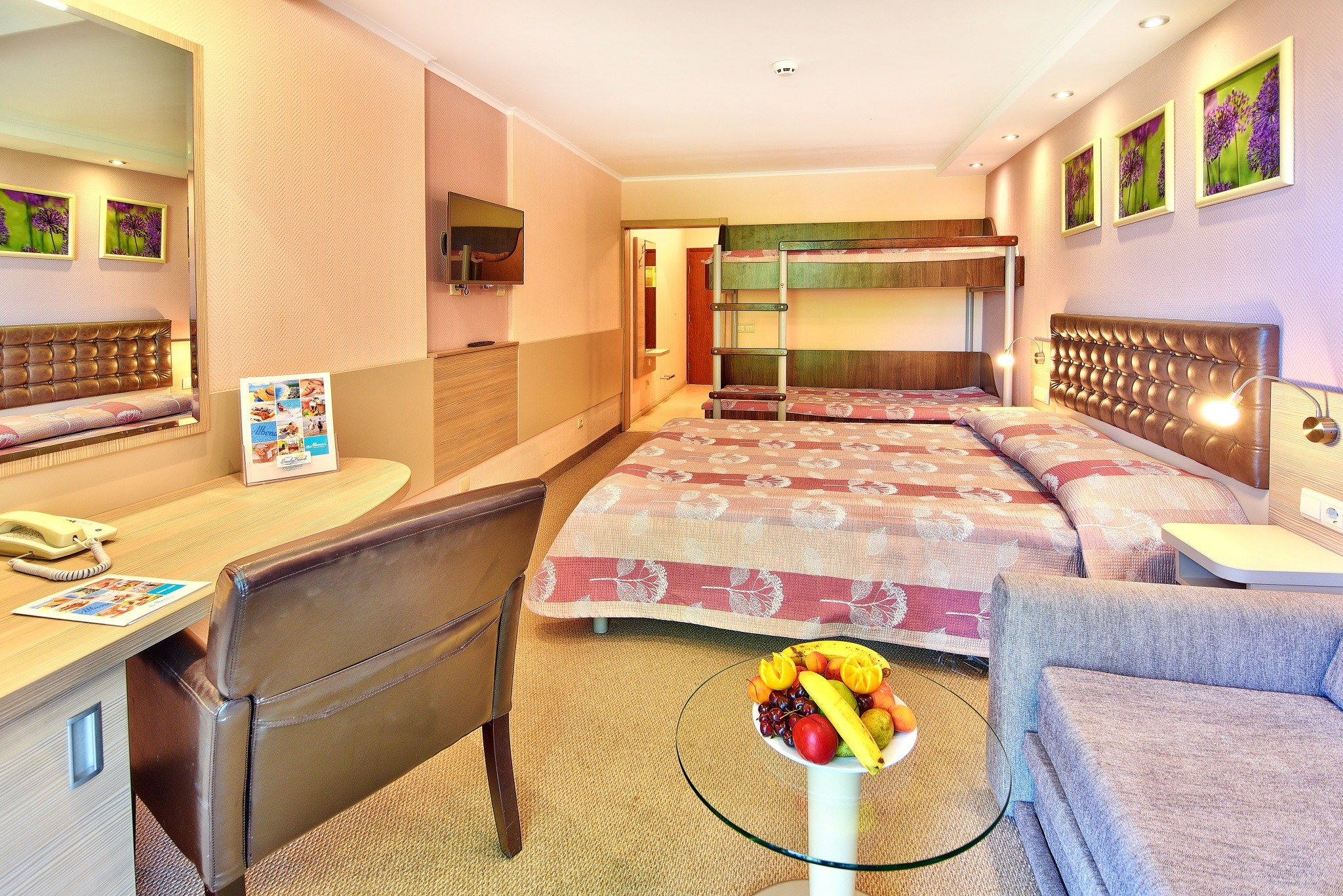 - Family dvojlôžková izba: priestrannejšia, poschodová posteľ.