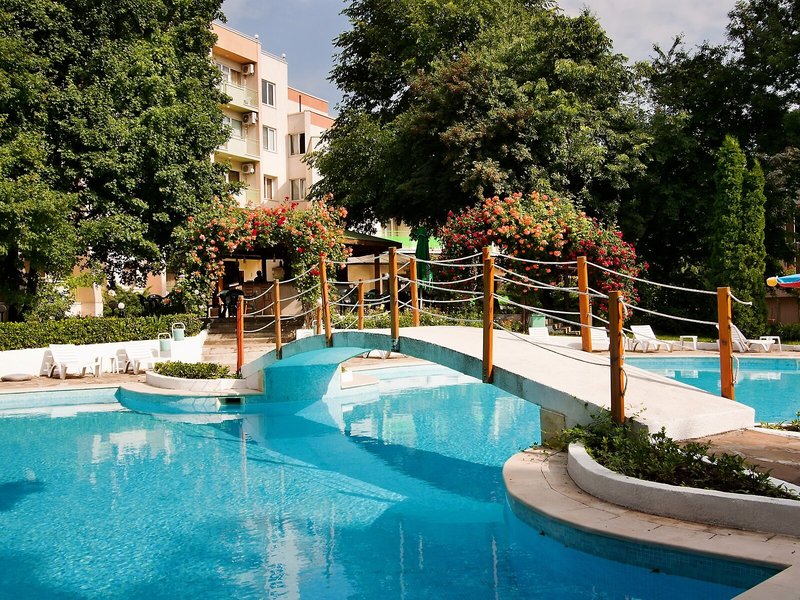 Lage & Umgebung Das Hotel liegt im Zentrum des Feriengebietes Goldstrand ungefähr 350 m vom Strand und der zentralen Promenade entfernt. Es befindet sich zudem in der Nähe der Straße, die von Varna nach Albena führt und bietet den Gäste so mit dem Bus bequemen Zugang zu beiden Städten.