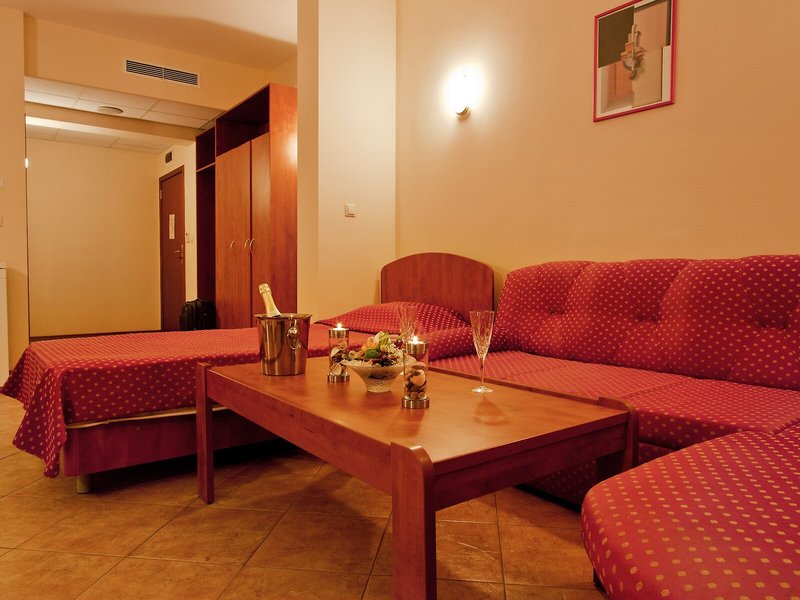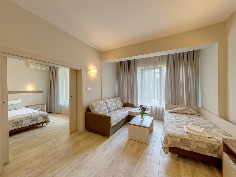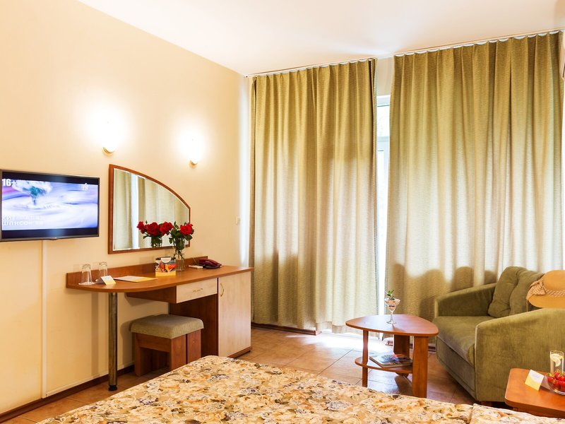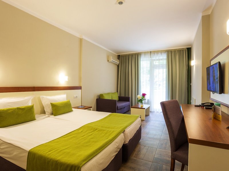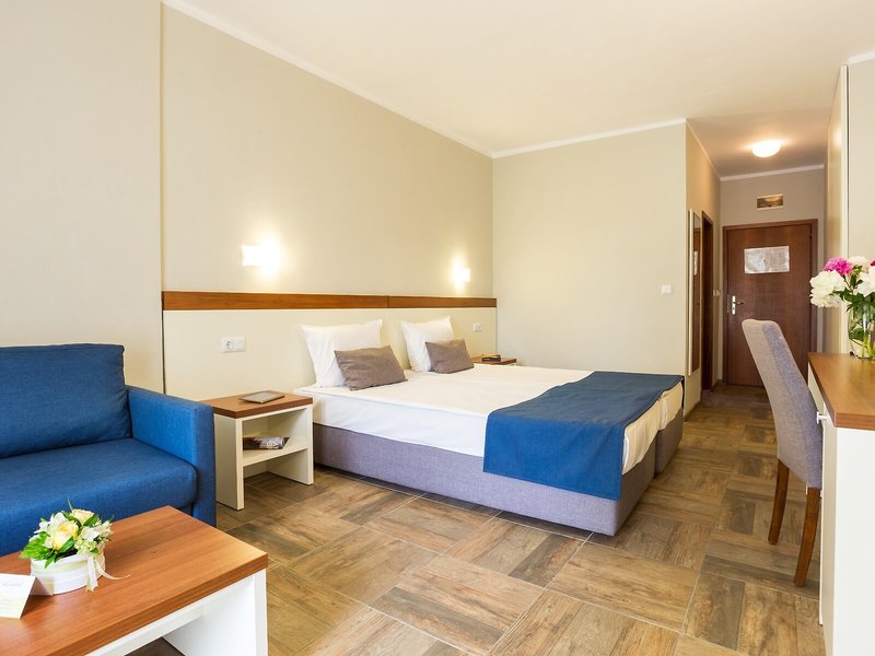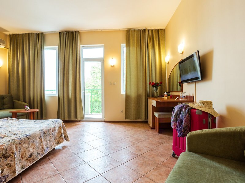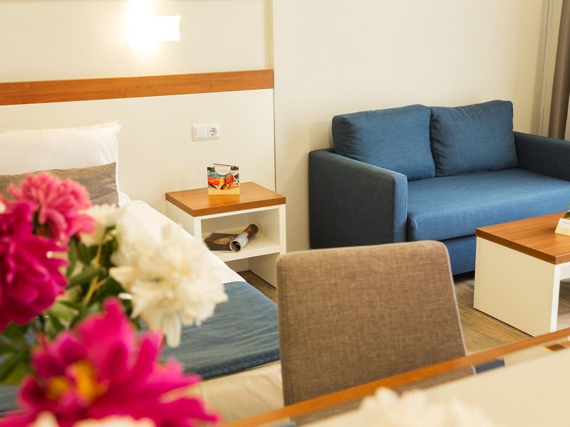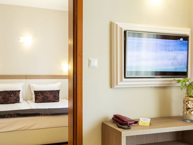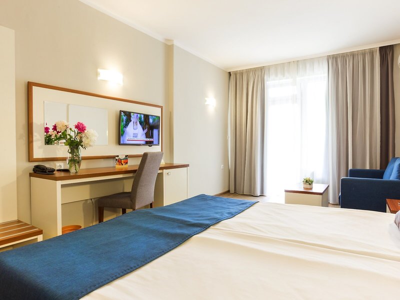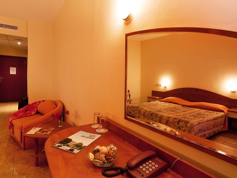 Ubytovanie: Izby sú vybavené klimatizáciou a kúrením. Väčšina izieb má balkón. Izby sú vybavené manželskou posteľou alebo rozkladacou pohovkou. Na požiadanie je možné rezervovať si samostatné spálne. K dispozícii je aj detská postieľka a prístelka. K dispozícii je trezor a minibar. Štandardom je aj chladnička a príslušenstvo na prípravu čaju/kávy. Pre pohodlie hostí je k dispozícii žehliaca súprava. K dispozícii je aj telefón, satelitná TV a bezplatné Wi-Fi pripojenie na internet. Kúpeľňa so sprchovacím kútom a vaňou je vybavená aj sušičom vlasov. Hotel ponúka rodinné a nefajčiarske izby.