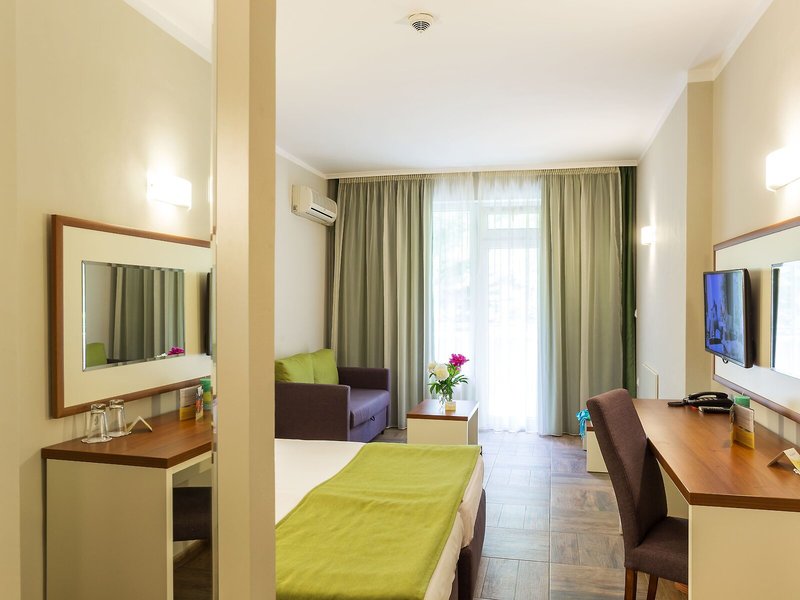 Poloha a okolie Hotel sa nachádza v centre letoviska Zlaté piesky, približne 350 metrov od pláže a centrálnej promenády. Je tiež blízko cesty vedúcej z Varny do Albeny, čo hosťom ponúka pohodlný autobusový prístup do oboch miest.