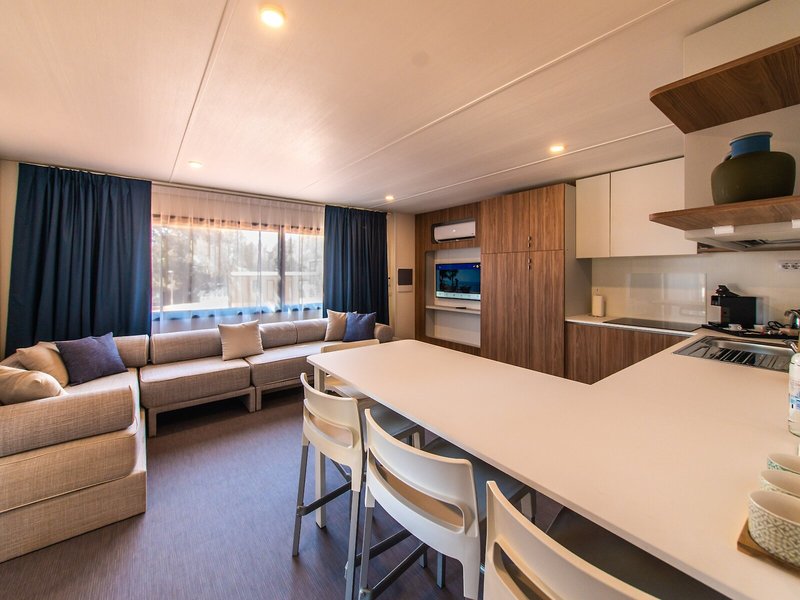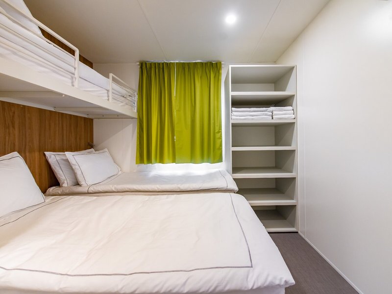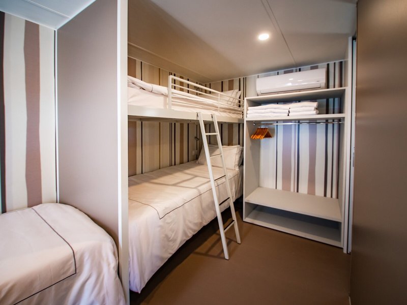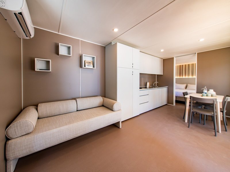 Ubytovanie: Izby sú vybavené klimatizáciou a kúrením. Terasa je štandardom vo väčšine izieb a poskytuje dodatočné pohodlie. Izby sú vybavené manželskou posteľou a rozkladacou pohovkou. Samostatné spálne sú k dispozícii za príplatok. K dispozícii je plne vybavený kuchynský kút s chladničkou, sporákom, mikrovlnnou rúrou, zariadením na prípravu čaju/kávy, umývačkou riadu a rúrou. K dispozícii je aj telefón, TV a Wi-Fi. Hostia môžu využiť aj záverečné upratovanie. Kúpeľňa so sprchovacím kútom je vybavená sušičom vlasov a županmi.