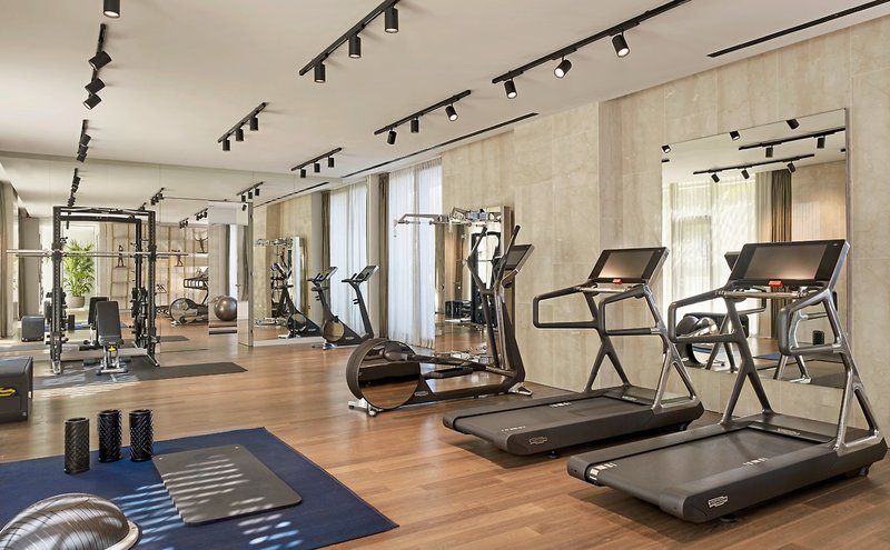 Sehr gut ausgestattetes Fitnesscenter mit einer großen Auswahl an Kardiogeräten