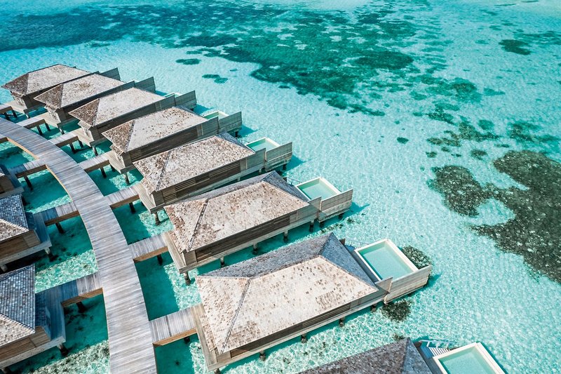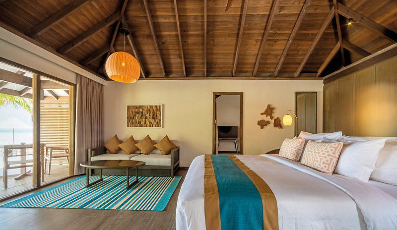 - auf Dheru Island gelegen, 101-120 qm, Villa, freistehend, Wasserbungalow (auf Stelzen über der Lagune), kombinierter Wohn-/Schlafraum, Regendusche, WC, Bademantel, Badeslipper, Haartrockner, Holzboden, Klimaanlage, Ventilator, Minibar kostenpflichtig, Safe, TV, WLAN, Wasserkocher, Espressomaschine, Kaffee/Tee, Terrasse (möbliert), direkter Meerzugang, Privatpool